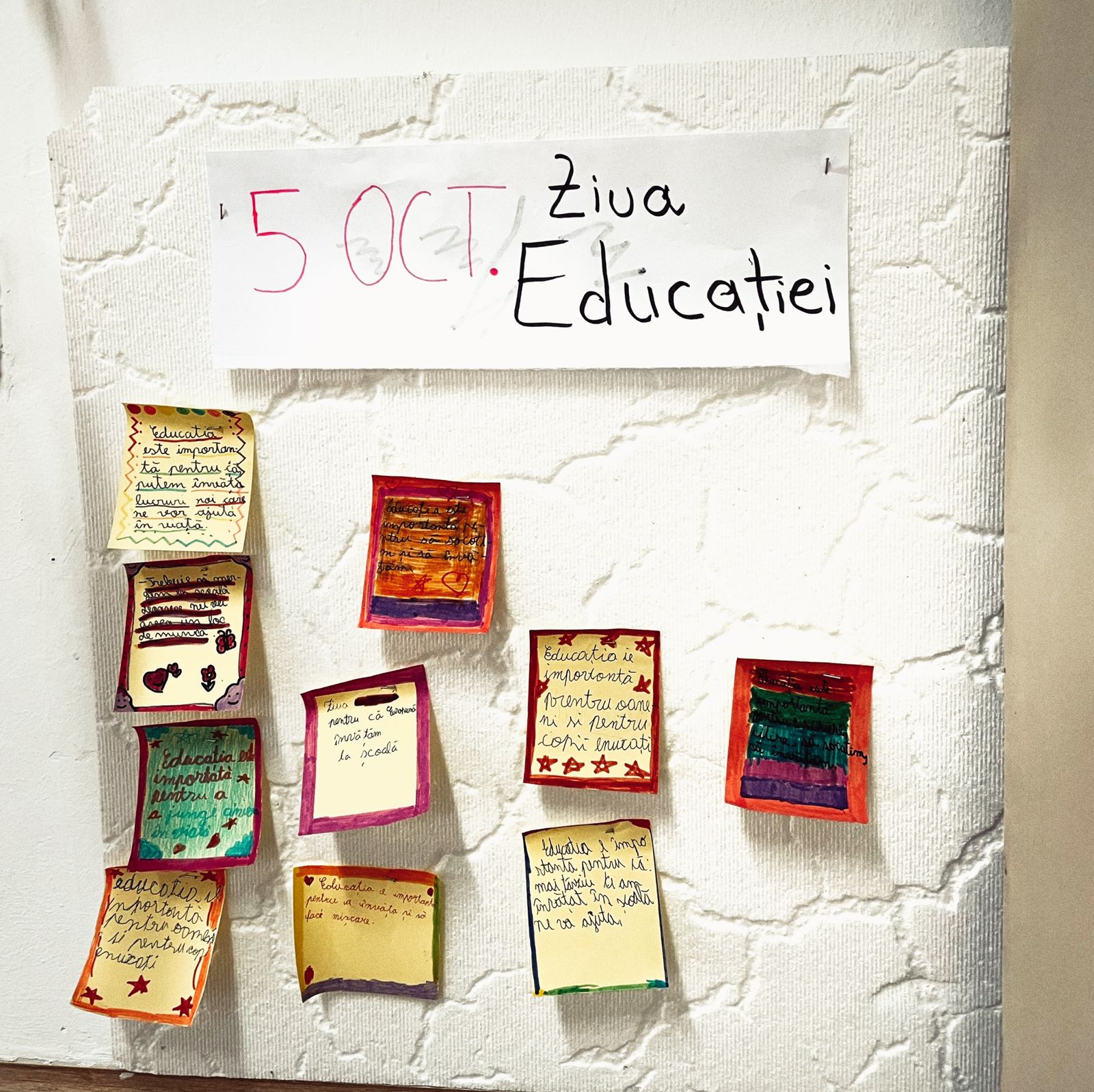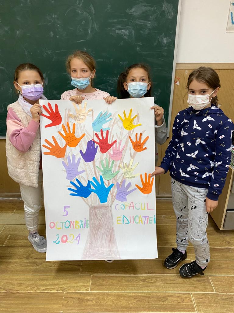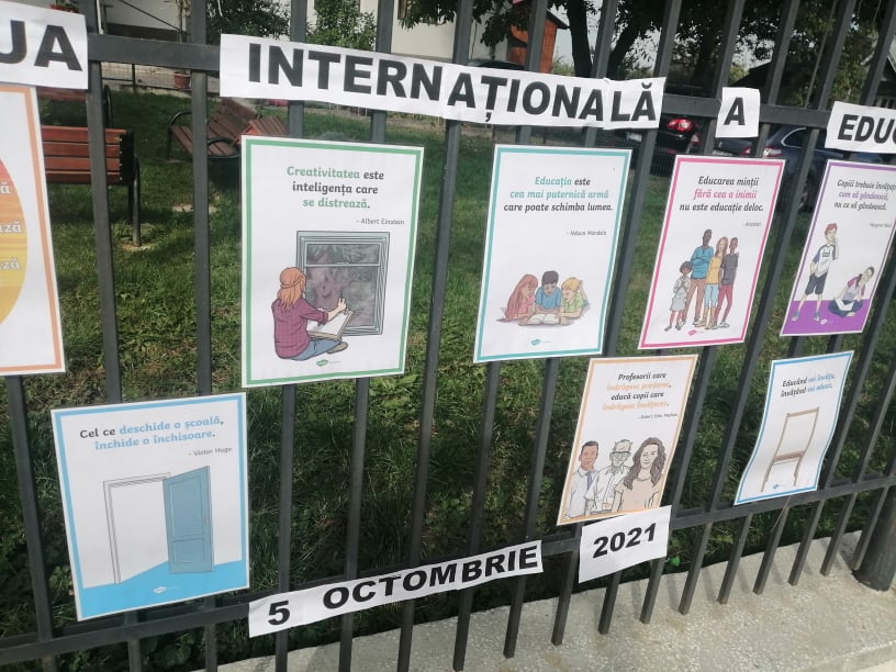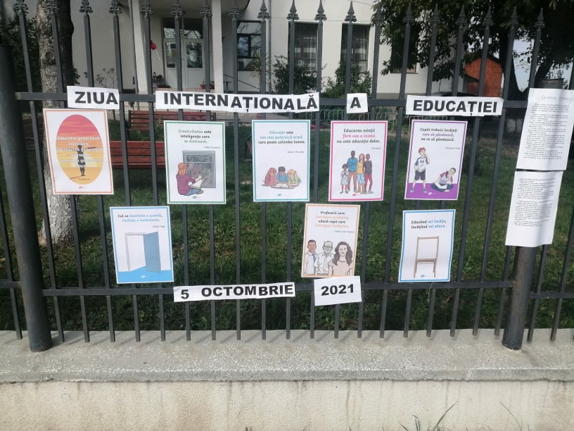 Toate cadrele didactice implicate în desfășurarea activităților dedicate Zilei Mondiale a Educației, au întreprins activități practice, explicative, interactive, cu vizionarea unor materiale specifice și realizarea unor colaje colective. Produsele obținute în urma activităților practice au fost expuse în fața școlii, pentru a putea fi văzute și admirate atât de către părinți cât și de toți elevii școlii.